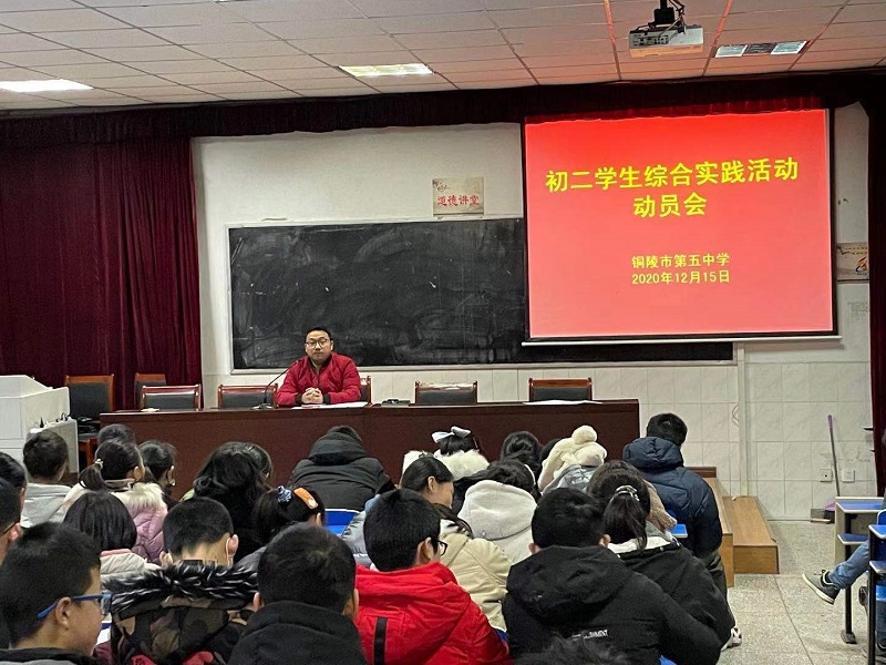 在實踐活動開始前,我校于12月15日在階梯教室召開了初二年級綜合實踐活動動員會,政教處副主任徐蛟龍主持會議,政教處老師胡帆、初二年級組長程永生老師和其他班主任及初二全體學(xué)生參加了會議。在會議中,徐主任對實踐活動中的注意事項及相關(guān)要求進(jìn)行了講解,要求同學(xué)們在實踐活動中能夠嚴(yán)格遵守紀(jì)律要求,保持中學(xué)生良好的精神風(fēng)貌。同時,徐主任也希望同學(xué)們能充分利用此次實踐活動的機(jī)會,在活動中拓展視野、豐富知識、學(xué)會本領(lǐng)、增長才干,獲得長足的進(jìn)步。