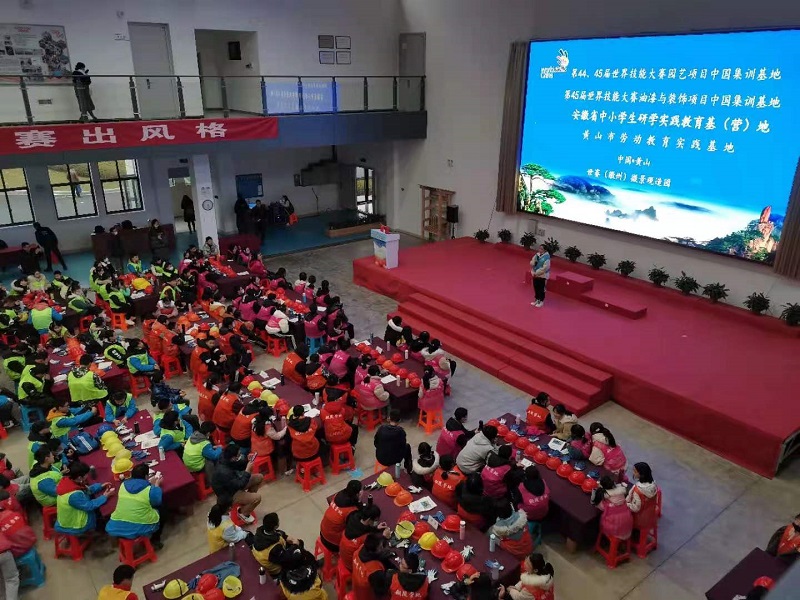 12月21日上午,我校工會主席瞿大寨親臨基地參加開營儀式,我校初二(1)班黎柘林代表全體學(xué)生領(lǐng)誓,在同學(xué)們莊重的誓言下,拉開了本次實踐活動的帷幕。本期活動采用“3+2”課程模式,即三天的“美麗徽州行”研學(xué)課程加上兩天的綜合實踐課程,讓同學(xué)們在游中學(xué)、樂中學(xué)、實踐中學(xué),既能體驗實踐基地豐富多彩的活動課程,也能前往黃山,在研學(xué)中深入了解徽州文化。
