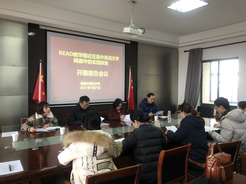 近期,我校王澈老師等負責的課題《READ教學模式在高中英語文學閱讀中的實踐探索》順利通過市級申報,正式立項。為了進一步做好課題開展、研究等工作,我校于1月21日下午組織召開了該課題開題報告會議。會議由教研室王毛毛老師主持,邀請市教科所英語教研員章全老師蒞臨我校進行課題指導工作。我校沐揚校長、呂建國副校長以及課題組相關成員參加了此次會議。