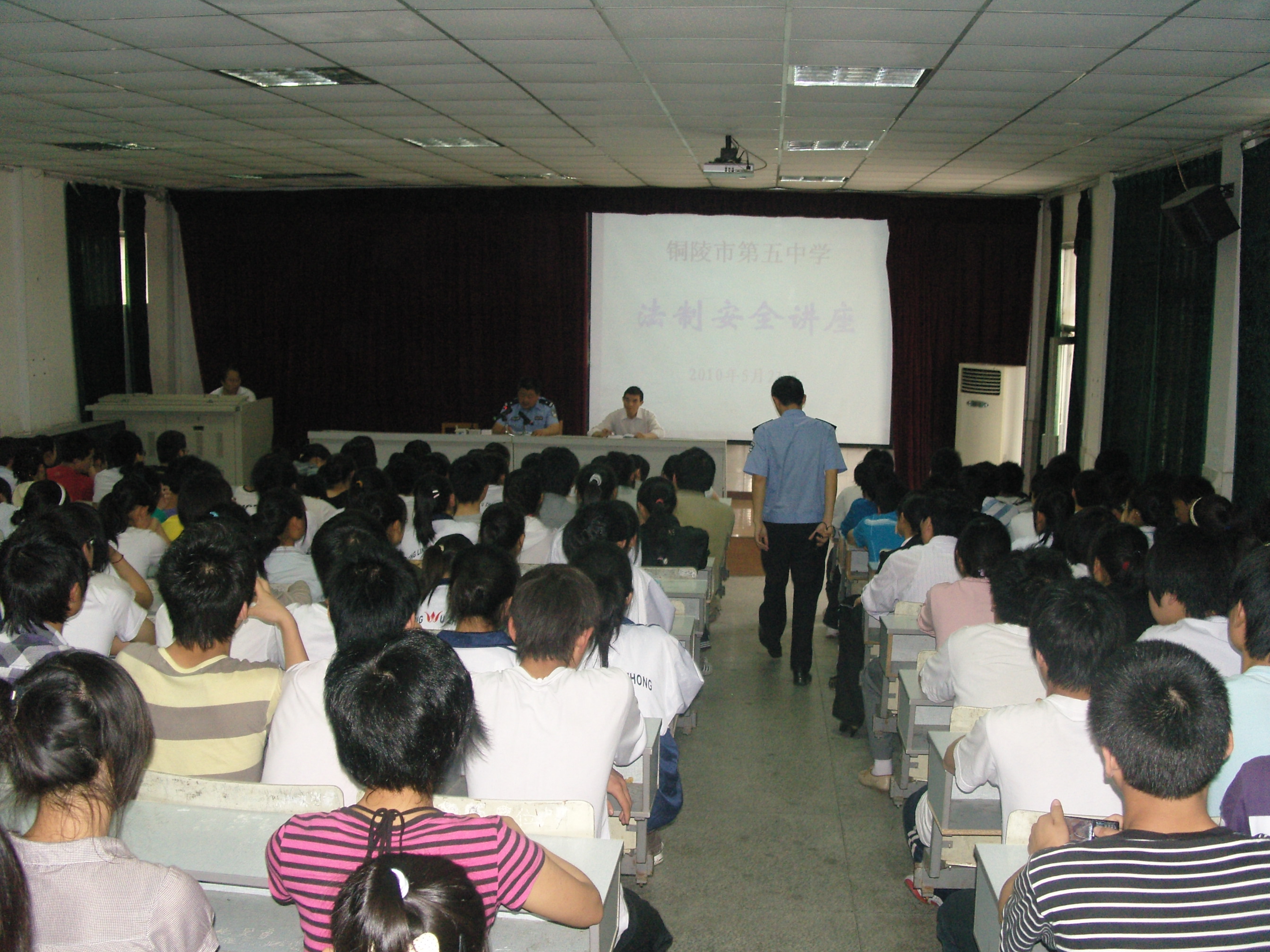5月21日下午,我校聯(lián)合獅子山派出所在學校多媒體教室舉行了法制講座。我校法制輔導員、獅子山派出所警官王文革運用大量圖片、生動的影像資料,結(jié)合案例分析,使廣大師生受到了一次深刻的法制教育,學法、懂法、用法、守法成為五中人的共識。