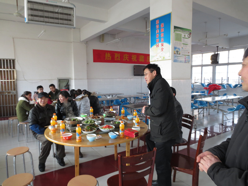 十七時(shí),學(xué)校領(lǐng)導(dǎo)沐校長(zhǎng)、楊書記、孫校長(zhǎng)、汪校長(zhǎng),西藏生工作處的吳老師、戴老師,男、女生管理員,門衛(wèi)、保安、食堂師傅,31名西藏生,大家濟(jì)濟(jì)一堂。圓圓的餐桌擺開來,旺旺的爐火燃起來,騰騰的火鍋沸起來,長(zhǎng)長(zhǎng)的鞭炮放起來,炫炫的禮花沖起來,暖暖的祝辭揚(yáng)起來,甜甜的橙汁喝起來,綿綿的藏歌唱起來……道一聲“過年好”,祝一聲“扎西德勒”,“我們共同進(jìn)步!”“高三哥哥姐姐高考非985不上!”“弟妹們好好努力!”“銅陵五中就是我的家!”廳外寒意陣陣,廳內(nèi)暖意融融。