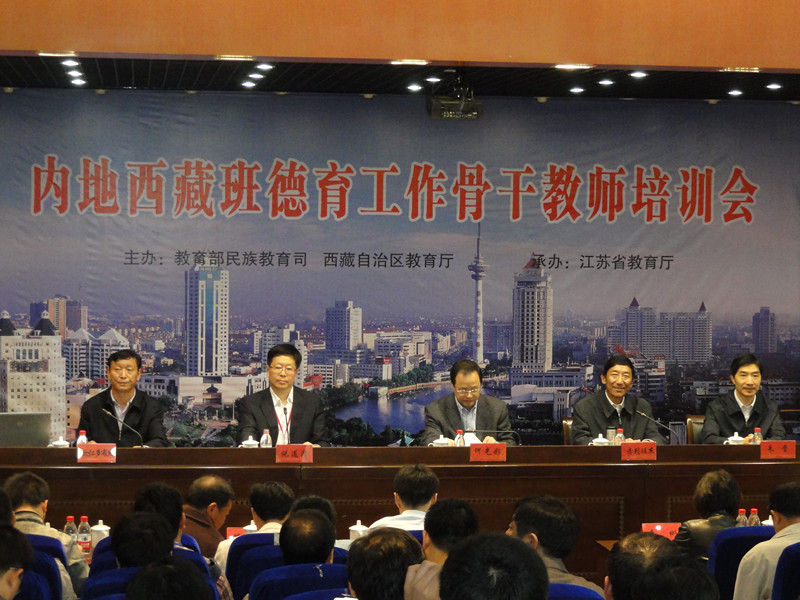 培訓(xùn)會(huì)時(shí)間不長(zhǎng),內(nèi)容卻非常豐富。簡(jiǎn)短的開(kāi)訓(xùn)儀式上,江蘇省教育廳副廳長(zhǎng)倪道潛致辭,西藏教育廳副廳長(zhǎng)赤列旺杰、教育部民族教育司副司長(zhǎng)何光彩講話后,五所內(nèi)地西藏班代表不同辦班形式在大會(huì)上作了交流發(fā)言。接著,大會(huì)聘請(qǐng)了四位專(zhuān)家給與會(huì)校長(zhǎng)及班主任作了四場(chǎng)專(zhuān)題報(bào)告:房玉國(guó)的《把握區(qū)情,正確處理西藏的主要矛盾和特殊矛盾》,次仁拉姆的《努力學(xué)習(xí),報(bào)效祖國(guó)》,蘇發(fā)祥的《藏族文化與民俗》,李建國(guó)的《深入解讀“我的中國(guó)夢(mèng)”重大意義、豐富內(nèi)涵、精神實(shí)質(zhì)和實(shí)踐要求》。21日下午,大會(huì)分內(nèi)初班、內(nèi)高普通班、內(nèi)高散插班、內(nèi)地中職班四組就德育工作進(jìn)行專(zhuān)題討論。培訓(xùn)會(huì)期間,與會(huì)者還充分利用間隙參觀了南通西藏民族中學(xué)課堂教學(xué)展示,觀摩了南藏學(xué)生課間全體同學(xué)集體鍋莊舞,參加了南藏第二屆“感動(dòng)校園人物”頒獎(jiǎng)晚會(huì),觀看了南藏師生升旗儀式。