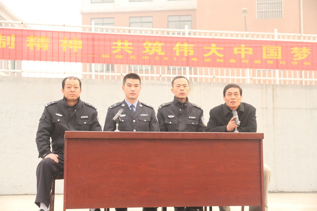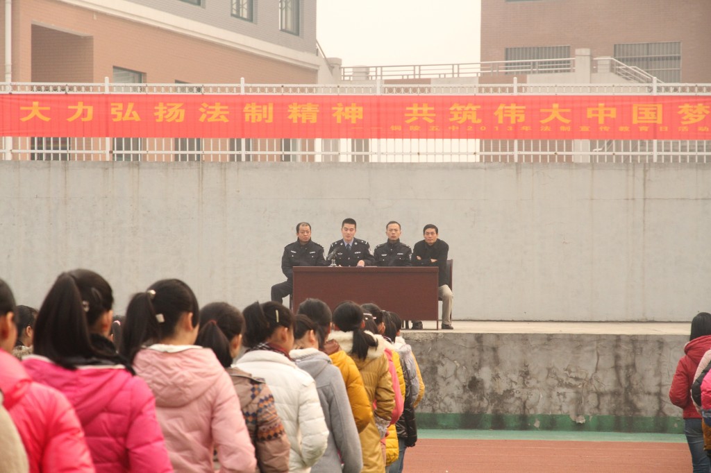 每年的12月4日 ,是我國的法制宣傳日。今年的法制宣傳日主題是“大力弘揚(yáng)法治精神,共筑偉大中國夢”。當(dāng)天上午八時四十分,我校法制副校長獅子山派出所張亞慧所長攜派出所民警到我校為全體學(xué)生作了一堂法制講座。在半個小時的講座中,民警以案說法,通過學(xué)生身邊的真實(shí)事例,運(yùn)用生動的語言,讓學(xué)生了解了生活中的法律常識,并學(xué)會一些必要的安全防范技能。