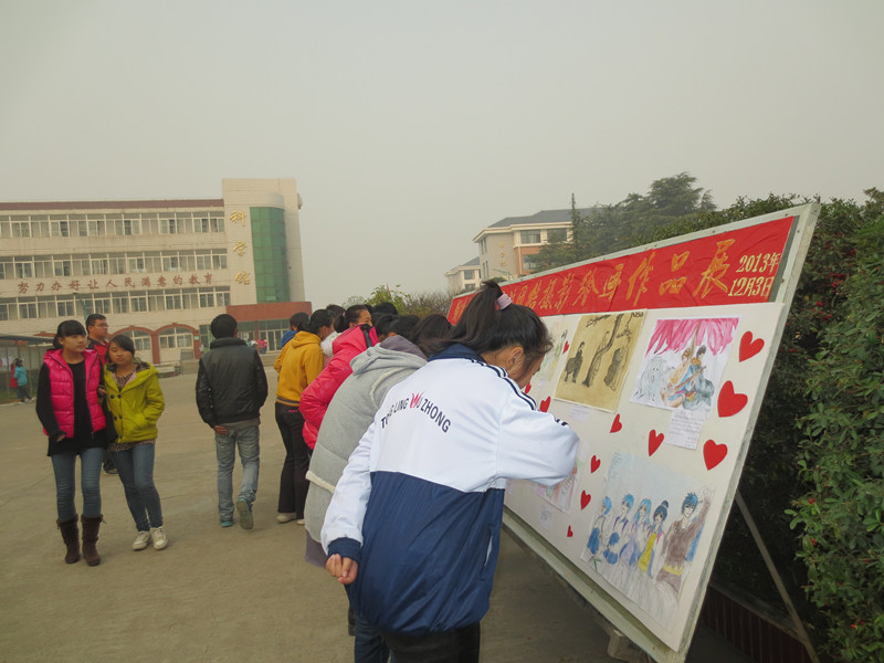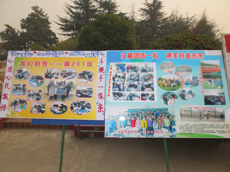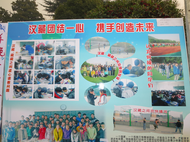 盡管天氣有些陰沉,盡管功課比較緊張,同學(xué)們利用下課時(shí)間也要看看展板。找到自己的作品了,找到同學(xué)的作品了,找到班級(jí)的照片了,找到同桌西藏生的照片了;貞浿髌诽N(yùn)含的一段段歷史,訴說作品記載的一個(gè)個(gè)故事。指指點(diǎn)點(diǎn),評(píng)頭論足,說說笑笑,其樂融融,和諧的氣氛在校園里凝聚,團(tuán)結(jié)的氛圍在校園里洋溢。