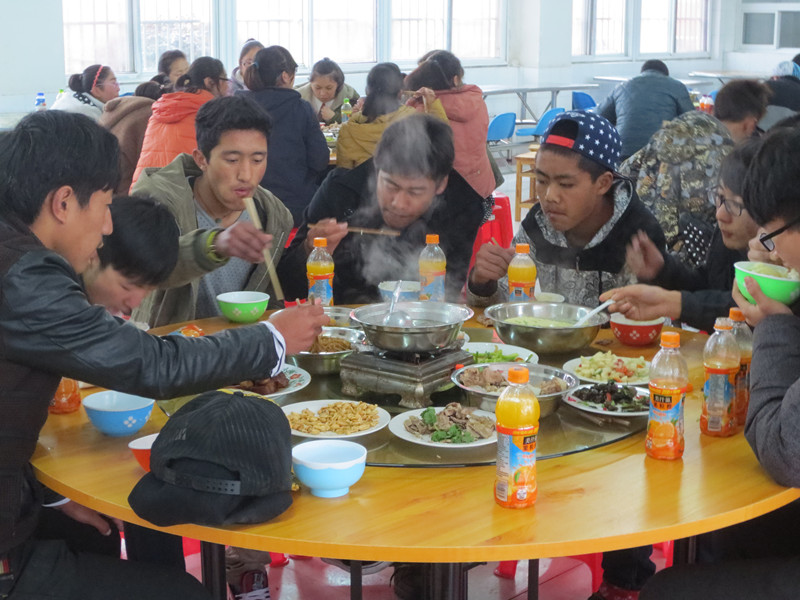 3月1日,周六,天氣轉(zhuǎn)好。藏歷年除夕。中午,學校為我校全體西藏生準備了豐富的年飯。紅紅的條幅掛起來,十四張圓桌擺開來,旺旺的火鍋燒起來,綿綿的藏歌唱起來。市教育局汪慧珍副局長、學校領導、西藏生工作處老師、采訪的各位記者,126名西藏生濟濟一堂,同慶藏歷新年。晚上,學校開放機房,讓孩子們在網(wǎng)上給遠在千里之外的親人問好,“羅桑扎西德勒!”“羅桑扎西德勒!”;西藏生活動室的設備也重新安裝,西藏衛(wèi)視直播的藏歷年春晚,聽到親切的藏語,看到熟悉的舞臺,聞到家鄉(xiāng)的味道,感受到藏地的風情,說笑著、和唱著,歡聲笑語在活動室里彌漫,悠長的藏歌在校園里回蕩。