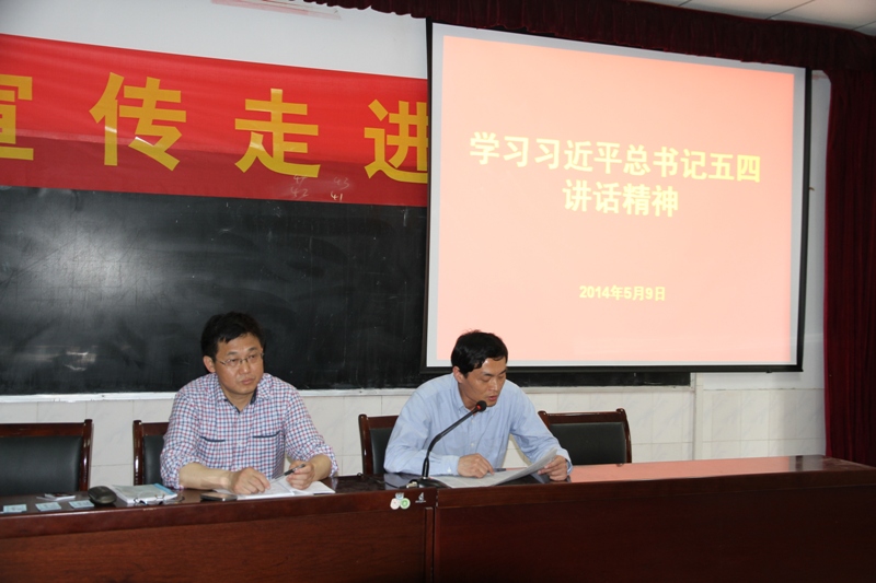 5月9日下午,我校召開全體教職工會(huì)議,組織學(xué)習(xí)習(xí)近平總書記五四重要講話精神。會(huì)上,校黨支部副書記楊克貴帶領(lǐng)大家學(xué)習(xí)了習(xí)近平總書記5月4日在北京大學(xué)師生座談會(huì)上的講話內(nèi)容,并要求全體教職工將講話精神貫徹到實(shí)際行動(dòng)中去,自覺踐行社會(huì)主義核心價(jià)值觀,努力奮斗,做好教育工作。