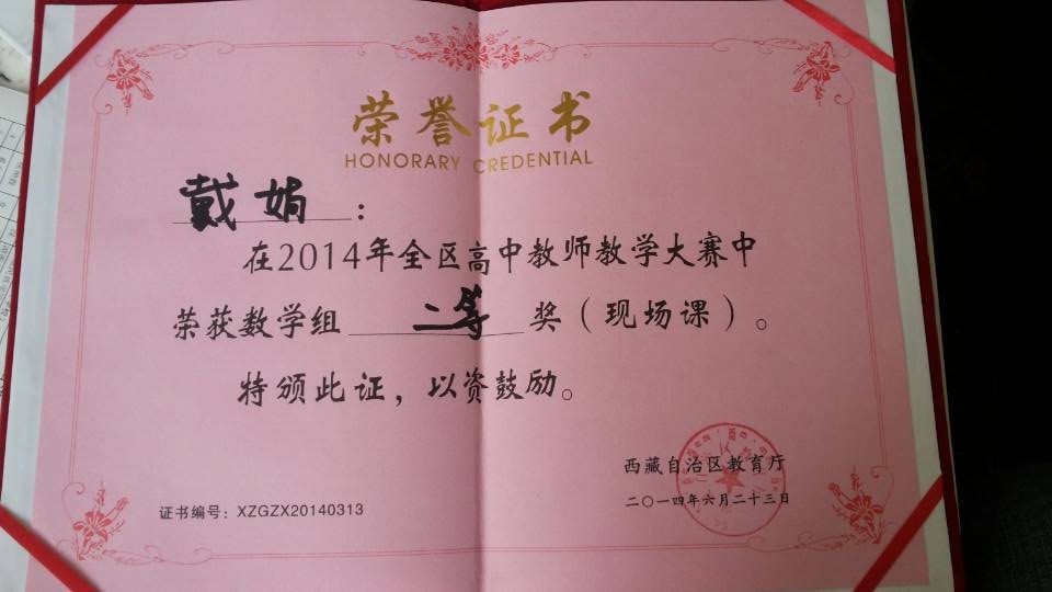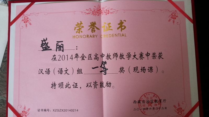 近日,西藏自治區(qū)首屆高中教師教學(xué)大賽在拉薩中學(xué)舉行,來自區(qū)內(nèi)高中及內(nèi)地西藏高中班的92名教師參加決賽。我校盛麗老師和戴娟老師分獲語文組一等獎、數(shù)學(xué)組二等獎。