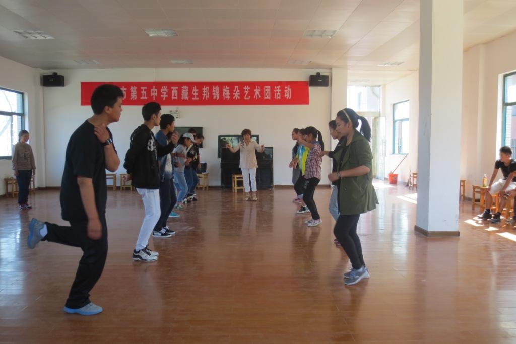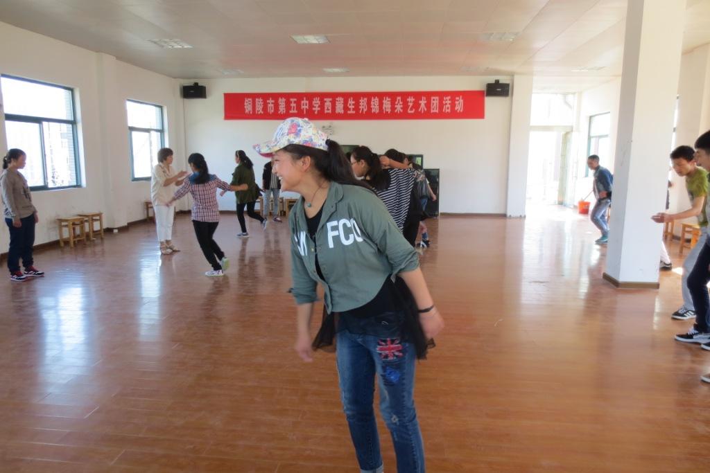 為豐富西藏生國(guó)慶假期生活,同時(shí)為銅陵市中小學(xué)運(yùn)動(dòng)會(huì)開(kāi)幕式表演作準(zhǔn)備,我校于國(guó)慶節(jié)期間組織全體高一西藏生齊聚藏生活動(dòng)室開(kāi)展邦錦梅朵藝術(shù)團(tuán)活動(dòng)。學(xué)校音樂(lè)老師崔芬芳和劉靜老師積極帶領(lǐng)同學(xué)們練習(xí)舞蹈,并細(xì)心指導(dǎo)。同學(xué)們熱情飽滿(mǎn),認(rèn)真練習(xí),活動(dòng)室中不時(shí)傳來(lái)同學(xué)們的歡聲笑語(yǔ)。