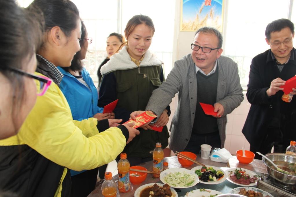 中午,李局長與藏班學(xué)生和援藏教師聚餐聯(lián)歡,并給大家派發(fā)了紅包和牛奶,熱情禮貌的藏班學(xué)生也獻上吉祥的哈達,載歌載舞,將美好的祝福送給李局長,也表達了他們對市政府及社會各界人士給與關(guān)懷的感激之情。