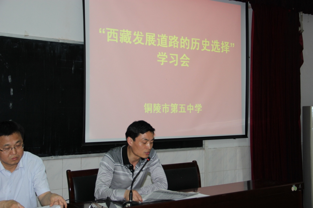 會上,楊書記帶領(lǐng)大家一起學(xué)習(xí)了《西藏發(fā)展道路的歷史選擇》的主要內(nèi)容,從舊制度必然退出西藏歷史舞臺、新西藏走上正確發(fā)展道路、“中間道路”的實質(zhì)是分裂中國、“和平”“非暴力”的假象和中央政府對十四世達賴的政策等5個方面,認真學(xué)習(xí)和理解了西藏發(fā)展道路的歷史選擇。會后,沐校長指出,市五中是安徽省三所援藏教育學(xué)校之一,政治任務(wù)重大,學(xué)習(xí)西藏發(fā)展道路的歷史選擇,能夠更好地了解西藏,進而更好地了解和關(guān)愛在校西藏生,促進民族團結(jié)思想教育,進一步促進教育援藏工作。
