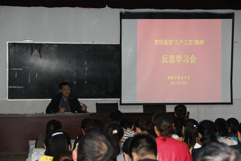 為深入貫徹落實(shí)習(xí)近平總書(shū)記“三嚴(yán)三實(shí)”重要講話精神,近日,我校召開(kāi)全體教職工會(huì)議,集中學(xué)習(xí)“三嚴(yán)三實(shí)”精神,反思“三嚴(yán)三實(shí)”精神貫徹落實(shí)情況。