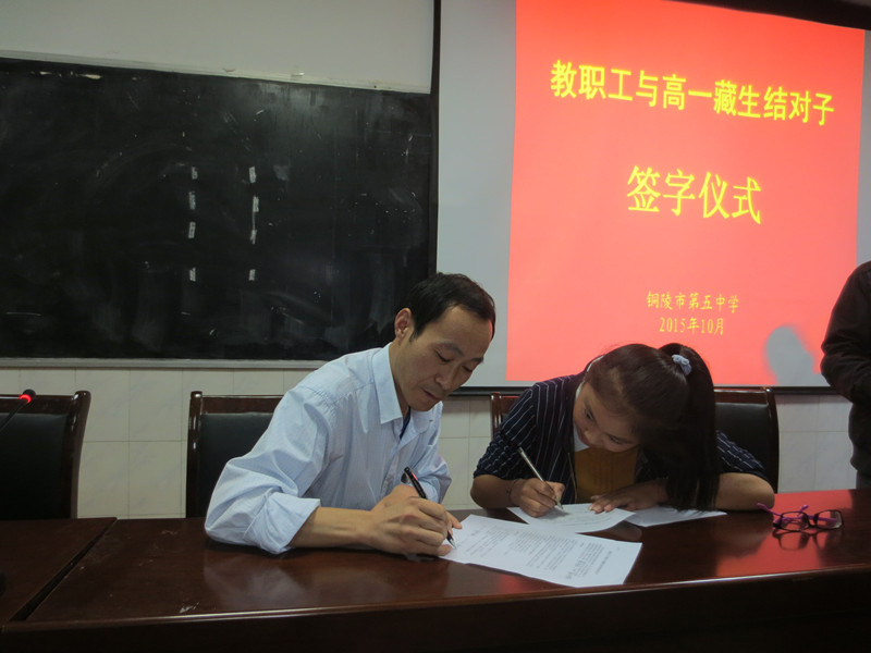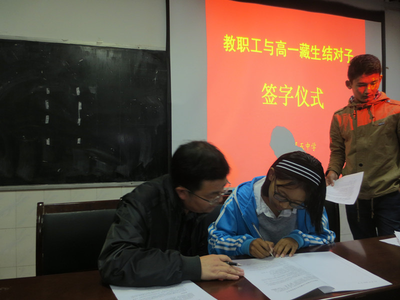 雨過天晴,10月9日,我校教職工與西藏生結(jié)對子簽字儀式在我校多媒體教室隆重舉行。