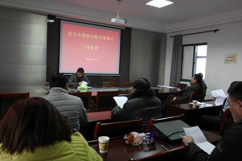 討論會上,教務處主任呂建國首先帶領大家一起學習了《市五中初中教學質(zhì)量績效方案》草案,并就草案中的重點內(nèi)容進行了解釋。孫校長就方案擬定的目的和意義進行了強調(diào),希望參會的教師代表能夠結合學校實際,以促進學校進一步發(fā)展為原則,暢所欲言,對草案提出自己的意見和建議。隨后,教師代表們紛紛踴躍發(fā)言,大家就草案內(nèi)容進行了深入的討論,并提出了寶貴的意見。
