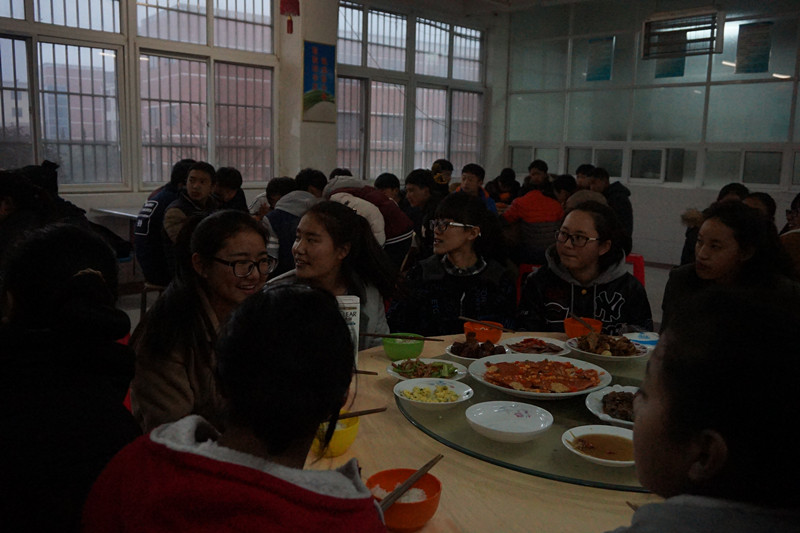 幾位寒假返藏從南京轉(zhuǎn)火車(chē)的同學(xué),因?yàn)闆](méi)有及時(shí)買(mǎi)到火車(chē)票,正在來(lái)學(xué)校的路上,食堂師傅也為他們預(yù)留一桌豐盛的飯菜。不少同學(xué)邊吃邊玩邊等著這幾位同學(xué)安全返校聚會(huì)。