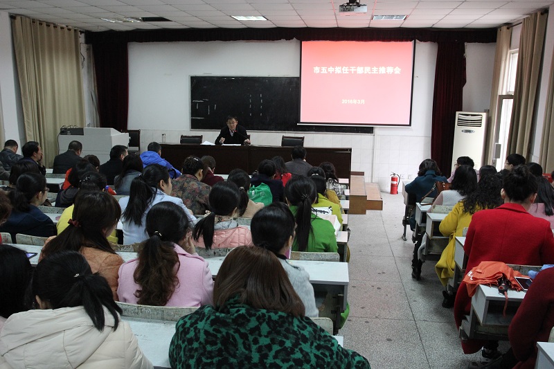 為推進學(xué)校管理工作規(guī)范化發(fā)展,根據(jù)市教育局黨委關(guān)于學(xué)校擬任干部民主推薦工作的相關(guān)要求,3月18日下午第四節(jié)課,我校在階梯教室開展擬任干部人選民主推薦活動,推薦學(xué)校團委副書記崗位人選;顒佑蓪W(xué)校黨支部書記、校長沐揚主持,全體教職工參加此次推薦活動。