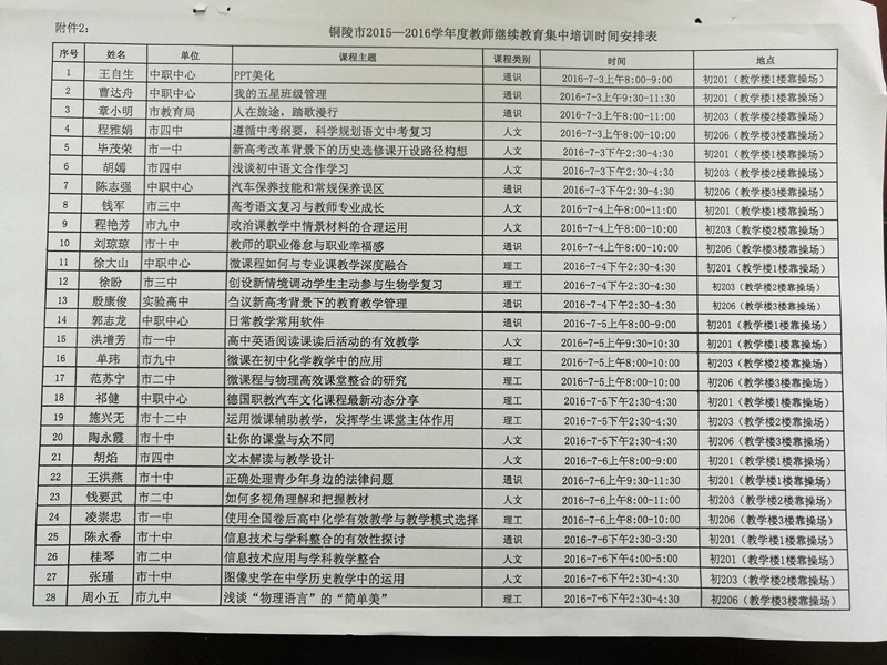 附:銅陵市2015-2016學(xué)年度教師繼續(xù)教育集中培訓(xùn)時(shí)間安排表