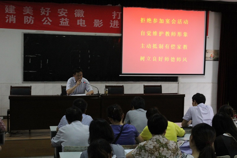 暑假又至,為了進(jìn)一步規(guī)范教育行為,提升教師形象,強(qiáng)化學(xué)校師德建設(shè)的力度,杜絕暑假期間教師從事“有償家教”和參加“謝師宴”等現(xiàn)象的發(fā)生,我校于近日在階梯教室召開(kāi)學(xué)期結(jié)束會(huì)議暨師德教育活動(dòng),全體教職工參加了會(huì)議。