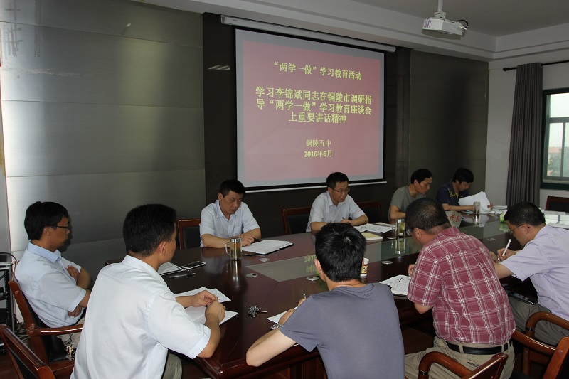 活動(dòng)中,學(xué)校黨支部副書(shū)記楊克貴帶領(lǐng)大家學(xué)習(xí)了李錦斌同志在我市調(diào)研指導(dǎo)“兩學(xué)一做”學(xué)習(xí)教育座談會(huì)上重要講話(huà)的內(nèi)容。沐揚(yáng)校長(zhǎng)結(jié)合學(xué)校“兩學(xué)一做”活動(dòng)開(kāi)展的實(shí)際,重點(diǎn)對(duì)李錦斌省長(zhǎng)在講話(huà)中強(qiáng)調(diào)的“學(xué)”與“做”談了個(gè)人體會(huì)。沐校長(zhǎng)指出,要深入把握李錦斌省長(zhǎng)重要講話(huà)的內(nèi)涵,積極貫徹李錦斌省長(zhǎng)“不斷夯實(shí)‘學(xué)’這個(gè)基礎(chǔ),始終突出‘做’這個(gè)關(guān)鍵”的指示,把推動(dòng)學(xué)校工作、促進(jìn)教育事業(yè)發(fā)展作為檢驗(yàn)學(xué)習(xí)教育成果的重要標(biāo)準(zhǔn),真正做到把工作責(zé)任落實(shí)到位,把學(xué)習(xí)成果轉(zhuǎn)化到位,做到思想上有新提高、服務(wù)上有新舉措、工作上有新作為,“學(xué)”“做”結(jié)合,齊頭并進(jìn),為創(chuàng)建和諧校園,打造“四個(gè)富有”城市和建設(shè)美麗幸福新銅陵貢獻(xiàn)力量。