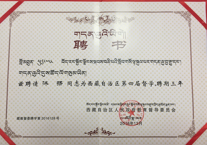我校校長(zhǎng)沐揚(yáng)被聘為第四屆西藏自治區(qū)督學(xué)