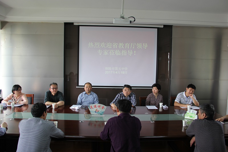 調(diào)研組一行實地察看了校園,詳細了解了市五中教育教學活動的開展情況。在行政辦公樓四樓會議室,調(diào)研組一行聽取了市五中黨支部書記、校長沐揚關于學校工作,尤其是西藏生教育管理工作開展情況的的匯報。與會人員還結(jié)合我省當前教育形式和特征,圍繞推進教育現(xiàn)代化需要著力解決的問題;學校推進教育事業(yè)改革發(fā)展和教育現(xiàn)代化的成功經(jīng)驗和做法以及面對五大發(fā)展的美好安徽建設背景下,教育事業(yè)應如何定位等議題進行了交流。