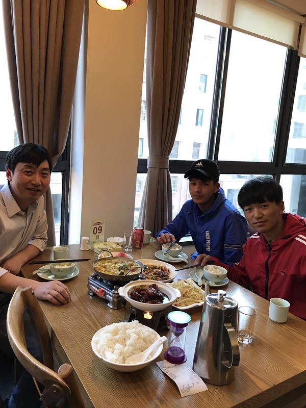 請(qǐng)結(jié)對(duì)藏生吃飯這事兒對(duì)五中教師來說是最平常不過的事情了,然而汪鶴來老師今天請(qǐng)吃的這頓飯卻有著不一樣的意義。瓊拉和丁增曲扎因?yàn)樵谌路菰驴贾谐煽?jī)不理想而情緒低落,為了幫助兩位同學(xué)重新振作,汪鶴來老師分別找兩人談了心,并根據(jù)兩人的實(shí)際情況幫助他們制定了學(xué)習(xí)計(jì)劃。為了進(jìn)一步激發(fā)兩位同學(xué)的斗志,汪鶴來老師當(dāng)著兩人的面許下了諾言:四月份月考成績(jī)進(jìn)步就請(qǐng)吃飯。這不,四月月考成績(jī)剛統(tǒng)計(jì)好,汪鶴來老師就迫不及待的拿著成績(jī)統(tǒng)計(jì)表仔細(xì)的查看,當(dāng)看到兩名同學(xué)成績(jī)較上次月考都有提升,尤其是丁增曲扎的進(jìn)步幅度還非常大,他長(zhǎng)舒了一口氣,露出了欣慰的笑容。