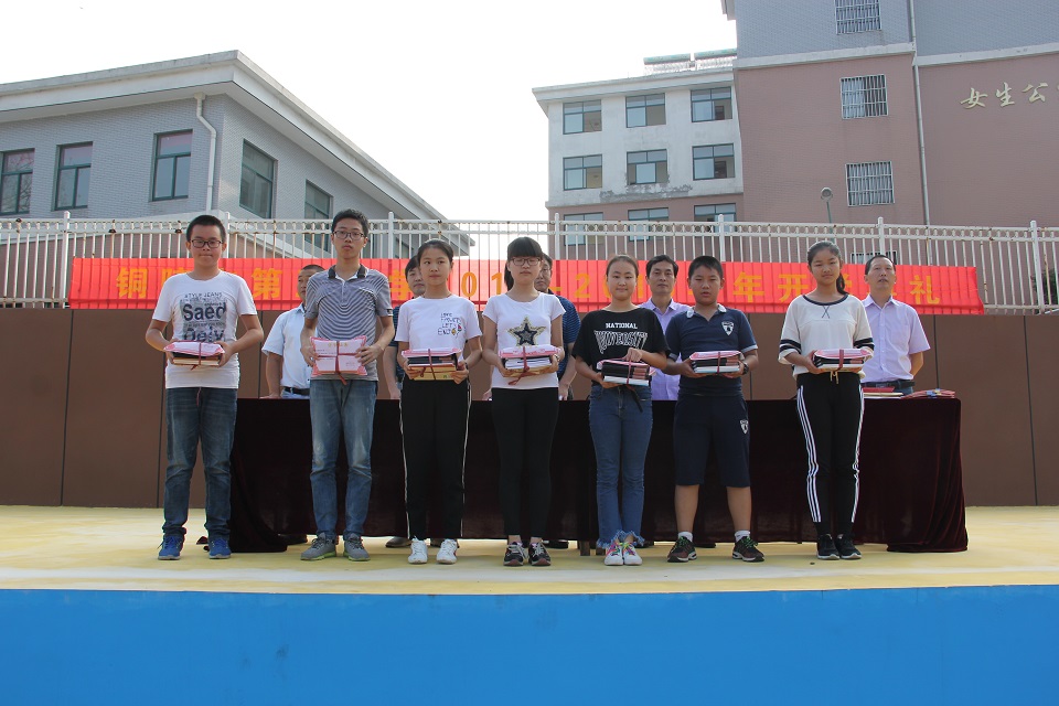 開學(xué)典禮由校黨支部副書記楊克貴主持。楊書記代表全體師生對(duì)剛進(jìn)入我校的新老師和新學(xué)生,尤其是80名高一西藏生表示歡迎,并和大家一起回顧了過去的一學(xué)年里,在全體師生的共同努力下,學(xué)校發(fā)展的歷程和取得的可喜成績。接著,校黨支部副書記楊克貴、行政副校長汪鶴來和教務(wù)處主任呂建國分別宣讀了2016-2017學(xué)年集體、教師和學(xué)生的獲獎(jiǎng)情況。在過去的一學(xué)年里,學(xué)校先后被評(píng)為銅陵市“明星學(xué)!、銅陵市“三八紅旗集體”等;教師17人次分獲國家、省、市級(jí)獎(jiǎng),其中國家級(jí)獎(jiǎng)9人次,市級(jí)獎(jiǎng)8人次;學(xué)生56人次獲市級(jí)以上獎(jiǎng),其中省級(jí)獎(jiǎng)7人次。隨后,學(xué)校舉行了盛大的頒獎(jiǎng)典禮,對(duì)表現(xiàn)優(yōu)異的集體和個(gè)人給予獎(jiǎng)勵(lì)。教師汪詩瀅和學(xué)生江雪慧分別代表全體師生作了發(fā)言,表了決心。