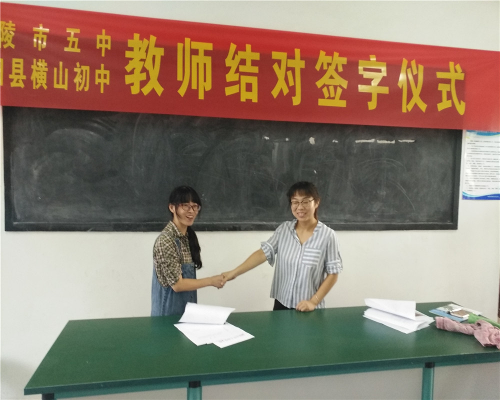 交流研討之后,在橫山中學(xué)左校長的主持下,五位老師和橫山中學(xué)的同學(xué)科老師舉行了結(jié)對簽字儀式。