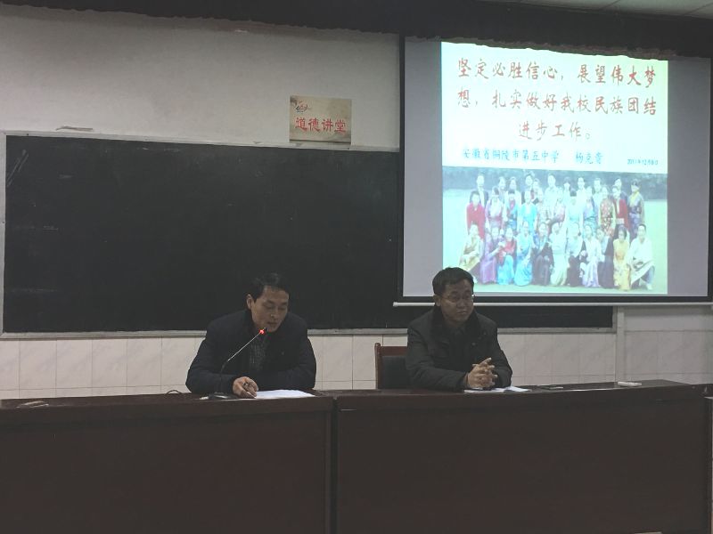為深入學(xué)習(xí)黨的十九大精神,貫徹落實(shí)習(xí)近平新時(shí)代中國特色社會(huì)主義思想,進(jìn)一步推進(jìn)學(xué)校各項(xiàng)工作深入高效發(fā)展,12月8日下午,我校在階梯教室開展十九大精神宣講活動(dòng)。學(xué)校黨支部副書記楊克貴向全體教職工作題為《堅(jiān)定必勝信心,決勝偉大夢想,扎實(shí)做好我校民族團(tuán)結(jié)進(jìn)步工作》的主題宣講報(bào)告。