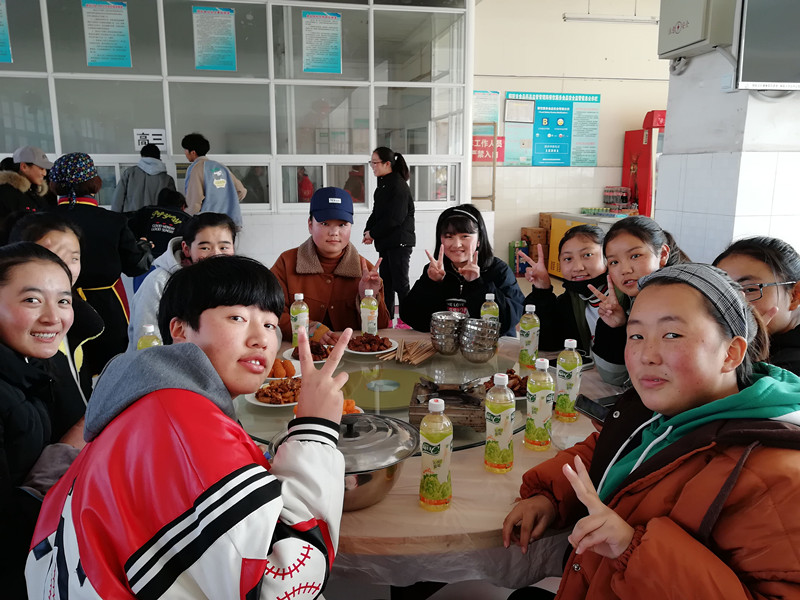 不少同學(xué)還沒(méi)有從校園文化節(jié)眾多豐富多彩的活動(dòng)回過(guò)神來(lái),元旦佳節(jié)又到了。1月1日中午,孩子們?cè)缭绲貋?lái)到食堂,驚喜地發(fā)現(xiàn)食堂已裝扮一新:“辭舊歲 四海一心 惠風(fēng)和暢 迎新年 漢藏同慶 化日舒長(zhǎng)”橫幅高高掛,餐桌上也早已擺放好了豐盛的節(jié)日午餐。除了學(xué)校中層以上領(lǐng)導(dǎo)外,市教育局黨委委員、紀(jì)委書(shū)記張梁特意在百忙之中來(lái)到五中,陪我校西藏生共度元旦佳節(jié)。張書(shū)記鼓勵(lì)大家說(shuō),西藏生都遠(yuǎn)離家鄉(xiāng)來(lái)銅陵求學(xué),很不容易。只要不斷堅(jiān)持,新的一年一定不負(fù)所望,取得佳績(jī)。大家也都備受鼓舞,紛紛拿起手中的飲料,用最誠(chéng)摯的敬意表達(dá)自己對(duì)教育局領(lǐng)導(dǎo)以及學(xué)校領(lǐng)導(dǎo)老師們的感激。一句句“新年好”、“新年快樂(lè)”“羅薩扎西德勒”此起彼伏,吉慶、祥和、熱鬧!