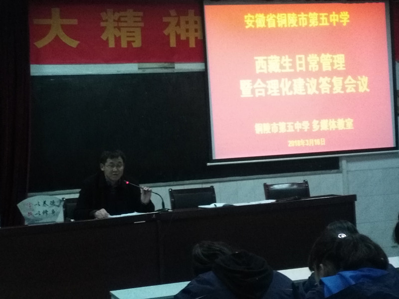 3月16日,我校在多媒體教室召開西藏生日常管理暨合理化建議答復(fù)會(huì)議。會(huì)議由西藏生工作處吳成兵老師主持,沐揚(yáng)校長(zhǎng)在會(huì)議上就西藏生日常管理暨合理化建議做了精彩的報(bào)告。