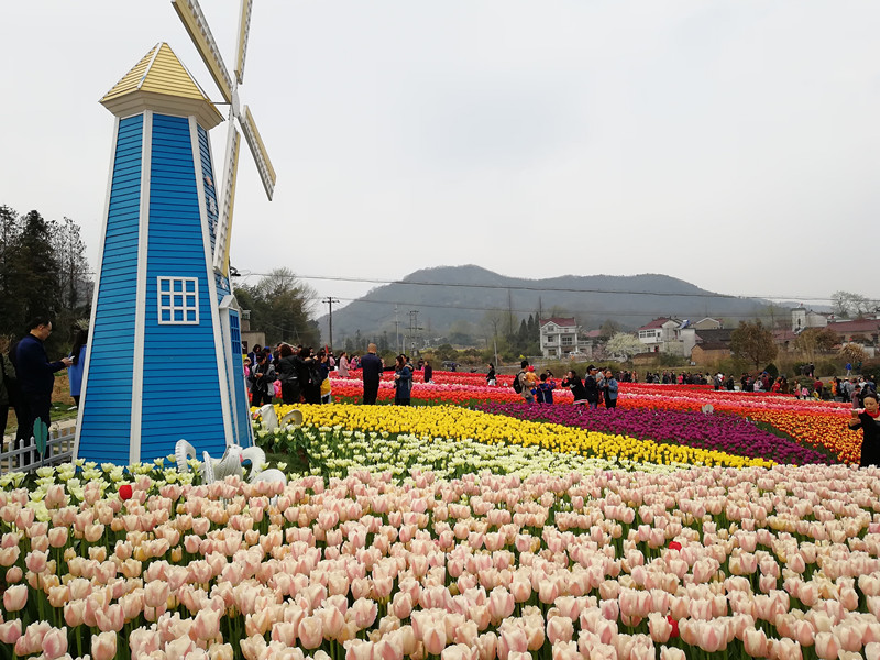 美妙絕倫的郁金香花叢中,孩子們和游客陶醉其中