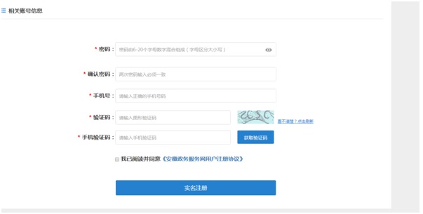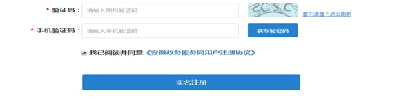 四、閱讀并同意(在方框中打√)《安徽政務(wù)服務(wù)網(wǎng)用戶注冊(cè)協(xié)議》后點(diǎn)擊“實(shí)名注冊(cè)”完成個(gè)人注冊(cè)。