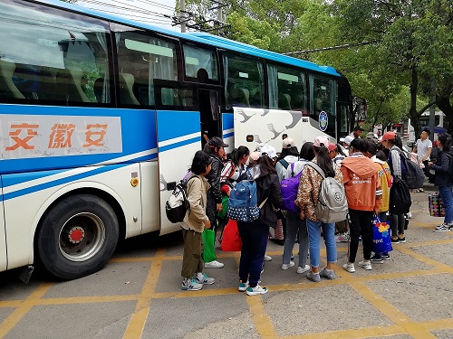 學(xué)校組織大巴專程前往南京迎接遠(yuǎn)道而來的孩子們