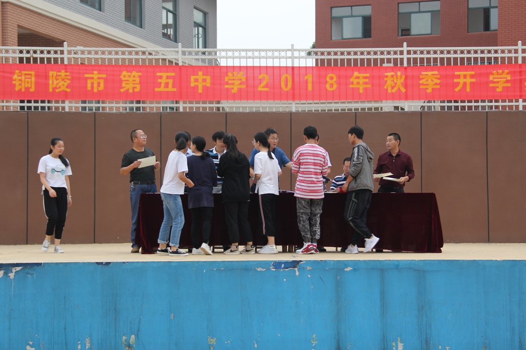 開學典禮由校黨支部副書記楊克貴主持。楊克貴副書記代表全體師生對剛進入我校的新老師和新學生,尤其是77名高一西藏生表示歡迎,并和大家一起回顧了過去的一學年里,在全體師生的共同努力下,學校發(fā)展的歷程和取得的可喜成績。接著,校黨支部副書記楊克貴、行政副校長汪鶴來和教務處主任呂建國分別宣讀了2017-2018學年集體、教師和學生的獲獎情況。在過去的一學年里,學校被評為銅陵市“明星學校”,西藏生工作處獲“銅陵好人”稱號等;教師64人次獲市級以上獎,學生51人次獲市級以上獎。隨后,學校舉行了頒獎典禮,對表現(xiàn)優(yōu)異的集體和個人給予獎勵。教師舒婷和學生周爽分別代表全體師生作了發(fā)言,表了決心。
