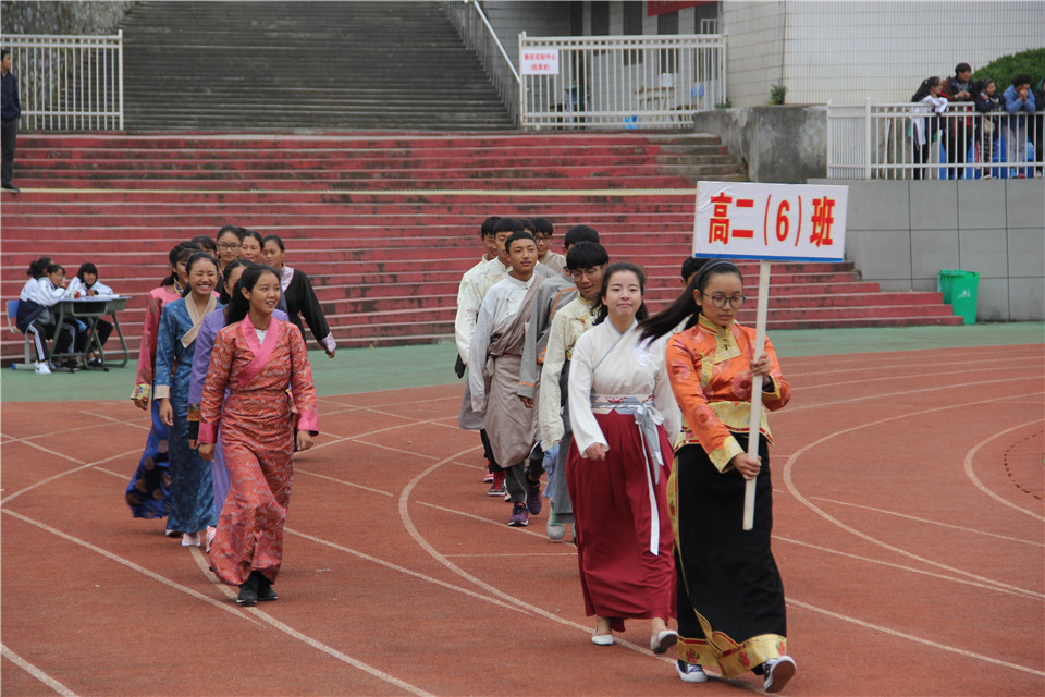 10月18日上午7:30,運動會開幕式正式開始。在儀仗隊的引領下,裁判員、西藏生代表隊、各班級運動員邁著矯健的步伐,進入運動場內(nèi),接受大會組委會和全體觀眾的檢閱。在莊重的升國旗儀式后,學校黨支部書記、校長沐揚致開幕詞,希望全體工作人員盡職盡責,運動員發(fā)揚團結、友誼、拼搏、創(chuàng)新的精神,把本次運動會開成團結和諧的大會。接著,運動員代表和裁判員代表分別宣誓。伴隨著一聲槍響,校長沐揚宣布運動會開幕。