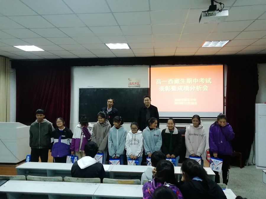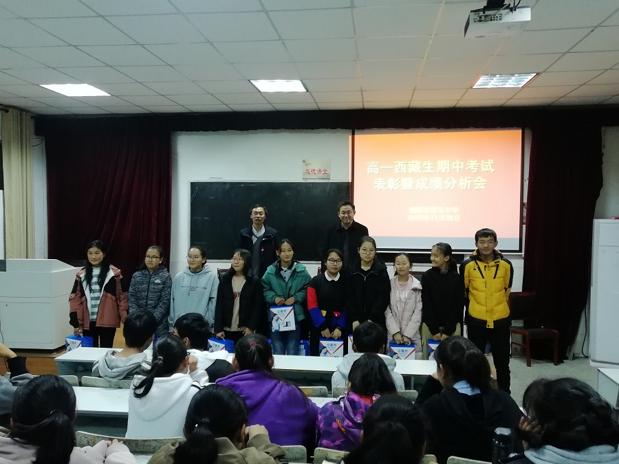 11月28日,我校召開(kāi)全體高一西藏生工作會(huì)議,針對(duì)高一西藏新生入學(xué)三個(gè)月以來(lái)的生活、學(xué)習(xí)表現(xiàn)進(jìn)行總結(jié),以及對(duì)剛剛結(jié)束的期中考試進(jìn)行表彰和成績(jī)分析。