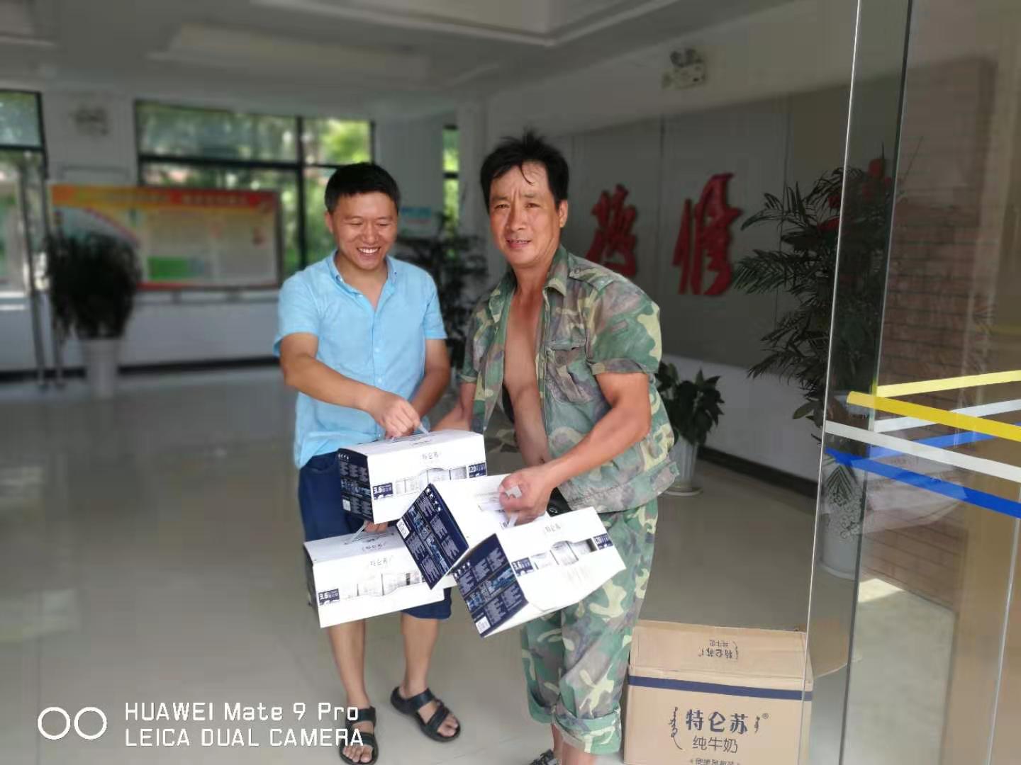 7月29日上午,學校買了一箱箱的牛奶和礦泉水等消暑物品,向工人們一一發(fā)放并表達對工人們烈日下高質量完成工作的感謝和問候。