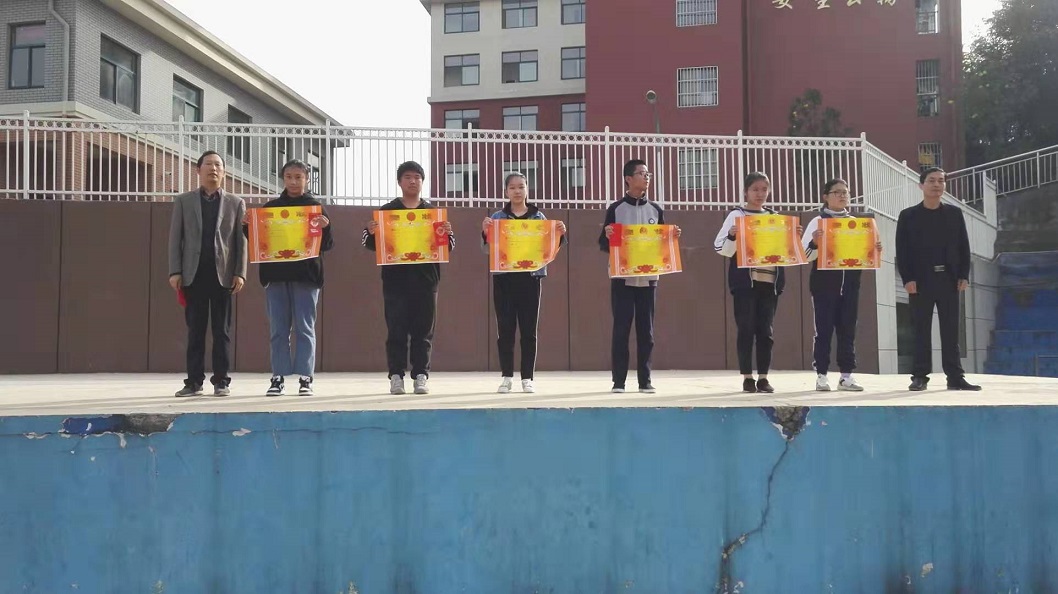 10月29日上午,我校利用大課間時(shí)間,舉行第41屆校園田徑運(yùn)動(dòng)會(huì)頒獎(jiǎng)儀式,學(xué)校黨支部副書(shū)記楊克貴和業(yè)務(wù)副校長(zhǎng)呂建國(guó)分別為各組團(tuán)體總分前六名班級(jí)、獲得運(yùn)動(dòng)會(huì)精神文明獎(jiǎng)班級(jí)以及在初一高一年級(jí)廣播體操比賽中獲得優(yōu)秀獎(jiǎng)的班級(jí)頒發(fā)榮譽(yù)證書(shū)和獎(jiǎng)金。