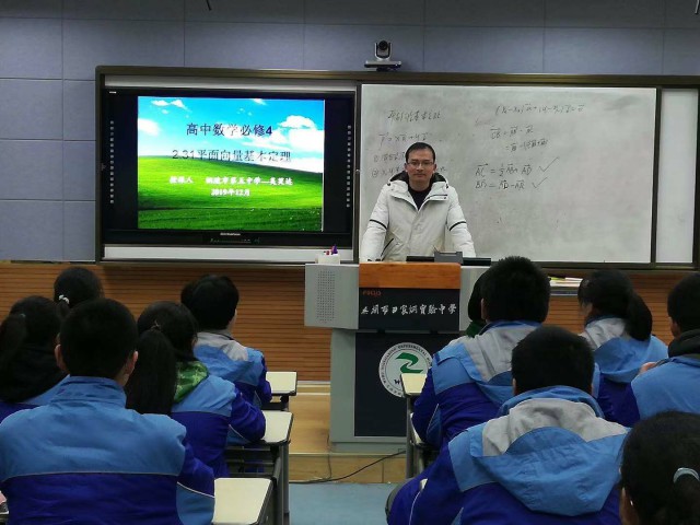 根據(jù)活動安排,首先由梁晨晨(蕪湖田家炳實驗中學)和吳笑達(銅陵市第五中學)兩位老師分別上了一節(jié)展示課。梁晨晨老師的課題是回歸分析,本節(jié)課是高中數(shù)學人教A版選修2-3的第三章第一節(jié),教學對象是高二理科學生,在這一節(jié)課中用精煉的語言和高超的基本功很好地為同學們解釋了最小二乘法的思想是什么?我們利用回歸方程求出預(yù)報值和實際值之間的誤差有什么用?通過對案例分析的討論,讓學生了解回歸分析的思想方法,避免學生單純和機械地套用公式進行計算,對R^2取值越大,表示殘差平方和越小做了精彩的講解。吳笑達老師的課題是平面向量基本定理,本節(jié)課是啟發(fā)式探究式教學采用小組合作交流和自主探究相結(jié)合,讓學生經(jīng)歷自主學習—動手實踐---合作交流—總結(jié)歸納一系列數(shù)學學習活動,運用多媒體再現(xiàn)了向量的分解過程,加強了數(shù)學的直觀性。通過學生的實踐活動來獲得新知,領(lǐng)悟數(shù)形結(jié)合,歸納推理,類比推理等數(shù)學思想。