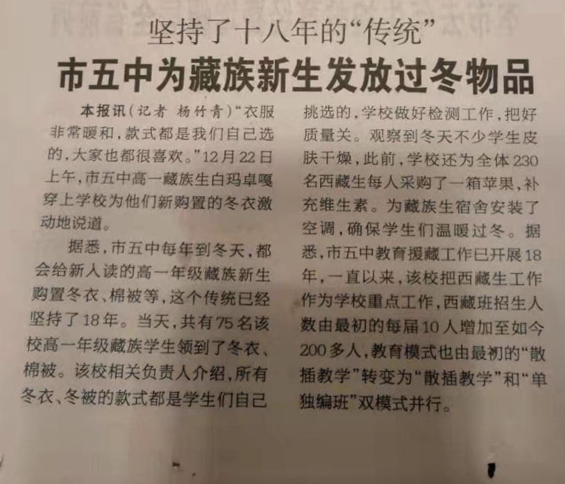 12月22日,我校為西藏生訂做的冬裝全部到位。下午,全體高一西藏生到達(dá)活動(dòng)室領(lǐng)取冬裝。穿上保暖好看的冬裝的學(xué)生們感受到了來自學(xué)校的關(guān)懷,將會以更加健康、飽滿的態(tài)度迎接接下來的學(xué)習(xí)與生活。