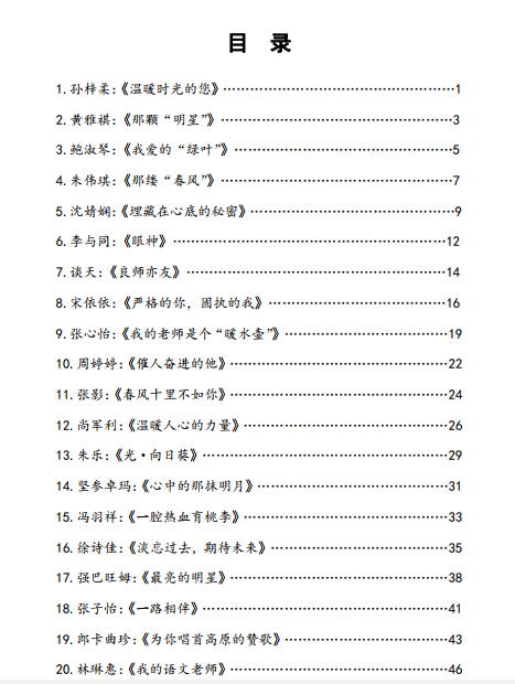 為弘揚(yáng)正能量,宣傳教師隊(duì)伍中的先進(jìn)事跡,2019年12月,學(xué)校組織開(kāi)展了以“我身邊的好老師”為主題的作文競(jìng)賽活動(dòng),讓全校學(xué)生同寫(xiě)一篇作文,F(xiàn)將作文競(jìng)賽中的優(yōu)秀作品收集整理、印制成冊(cè),供廣大師生學(xué)習(xí)、交流使用。