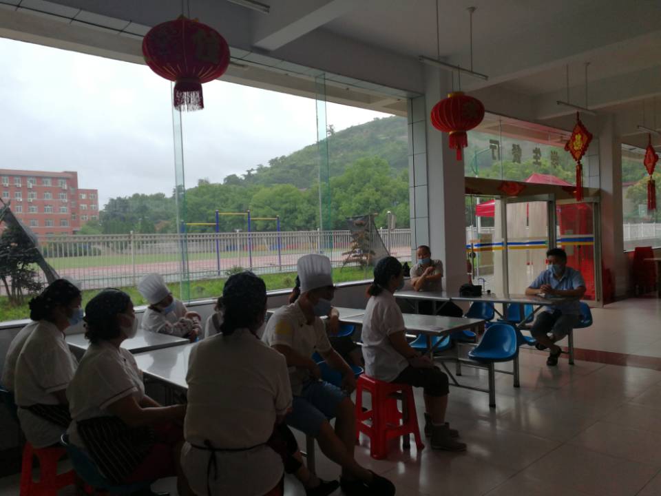 大檢查結(jié)束后,食品安全管理員秦老師針對檢查時出現(xiàn)的問題對食堂經(jīng)營者和從業(yè)者開展了一次食品安全的全員培訓(xùn),督促指導(dǎo)他們要嚴(yán)格遵守餐飲服務(wù)安全操作規(guī)范,筑牢食品安全防疫防線。