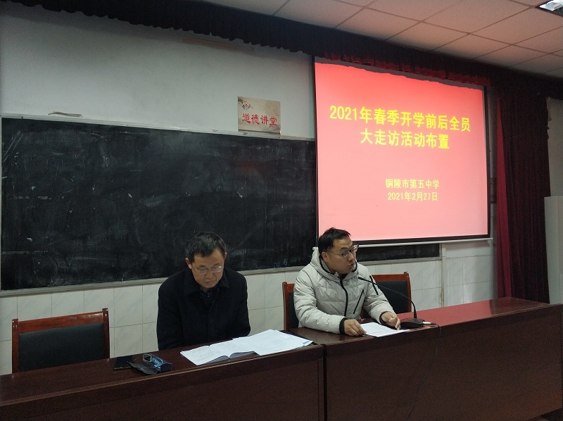 “大走訪”活動開始前,我校召開行政辦公會制定走訪活動方案,研究部署走訪工作,商定走訪活動細(xì)則等具體工作。2月27日,我校召開全體教職工會議,校黨支部書記、校長沐揚(yáng)主持會議,全面闡述“大走訪”活動的重大意義,并由政教處負(fù)責(zé)人徐蛟龍對走訪工作進(jìn)行了詳細(xì)部署,強(qiáng)調(diào)走訪要求和注意事項(xiàng)。