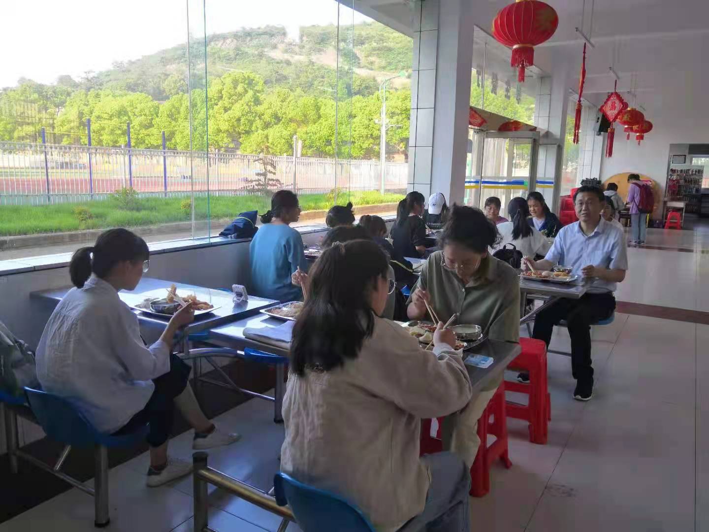 陪餐中的沐校長,看到學(xué)生們在排隊打飯的同時,手中都拿著本書默默吟誦,求知的眼神讓人心醉。沐校長也不忍心打擾他們,靜靜看著,臉上此刻洋溢著欣慰的笑容。積極奮進(jìn)的學(xué)生們,構(gòu)成校園里一幅美麗的畫卷。此時餐廳的時鐘指著6點30。