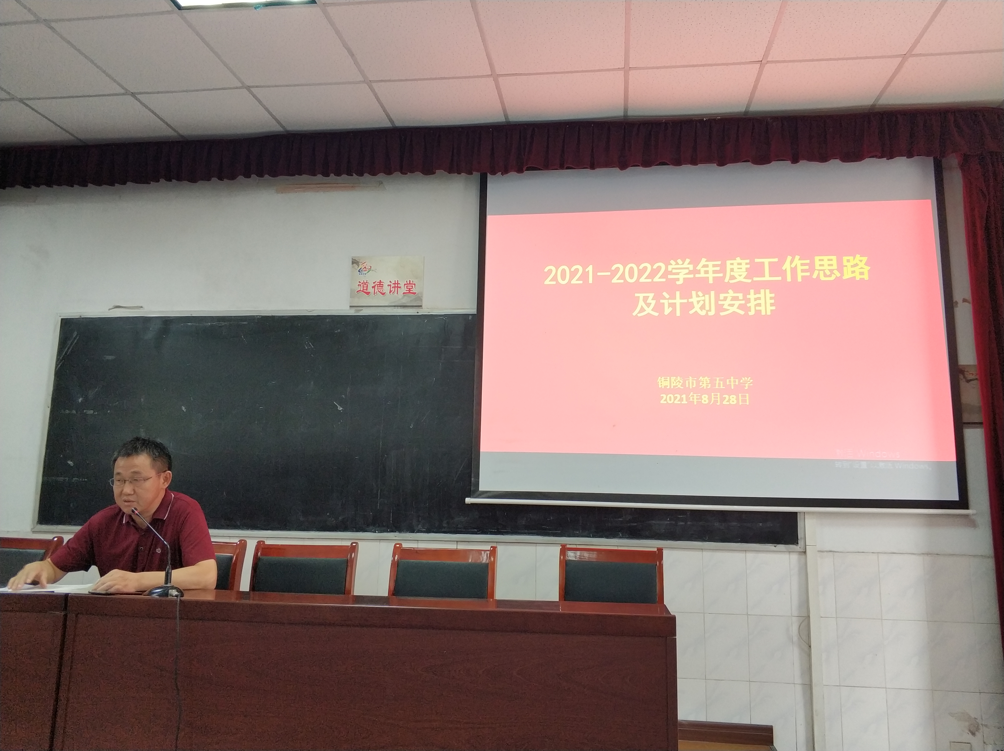 市五中黨支部副書記楊克貴、副校長汪鶴來、副校長呂建國、工會主席瞿大寨分別就各自分管的工作,向全體教職工報(bào)告了2021-2022新學(xué)年工作思路及計(jì)劃安排。