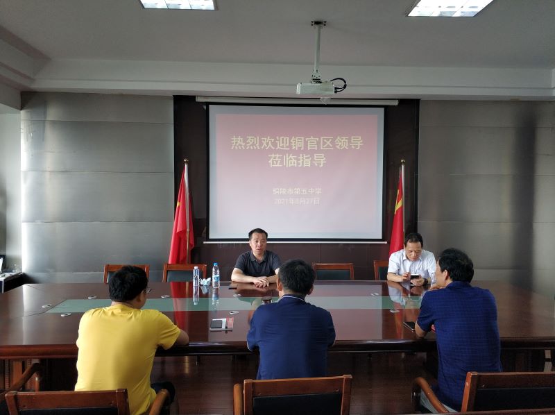 8月27日上午,銅官區(qū)區(qū)委常委組織部部長谷豐到五中指導(dǎo)疫情防控工作,獅子山社區(qū)黨工委書記鐘文陪同。