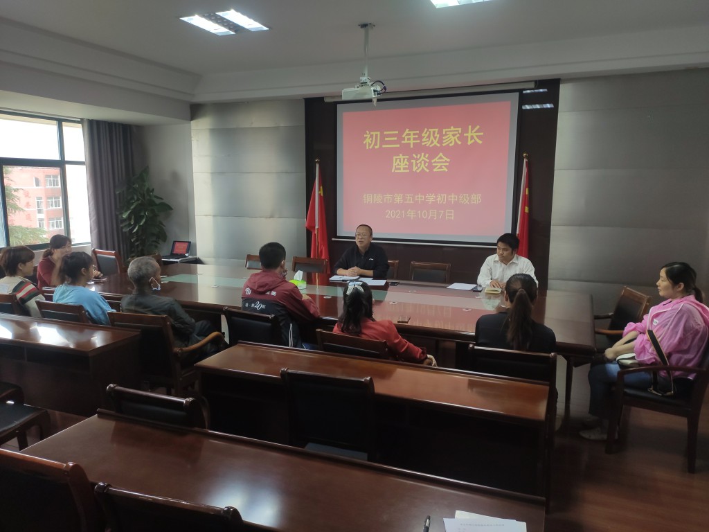 10月7日下午,市五中初中級部在綜合樓召開初三部分家長征求意見會,聽取家長代表的意見。會議由校工會主席、初中部部長瞿大寨主持。校長沐揚、初三班主任、初中部中心組成員參加會議