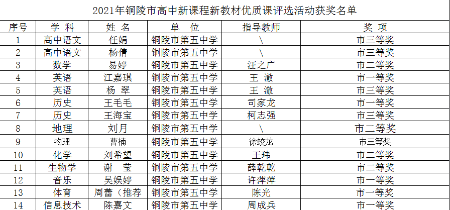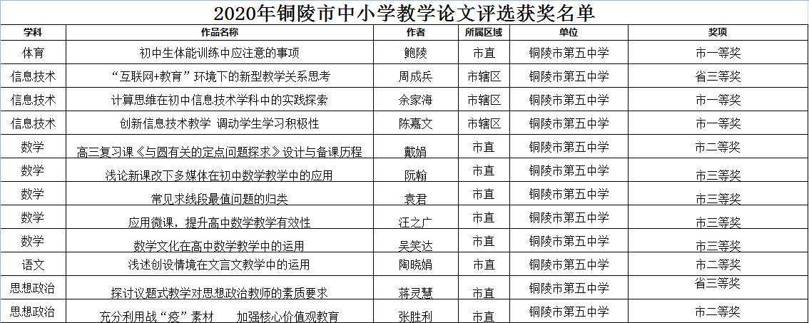 2020-2021年,我校教師在多項評比中喜獲佳績。