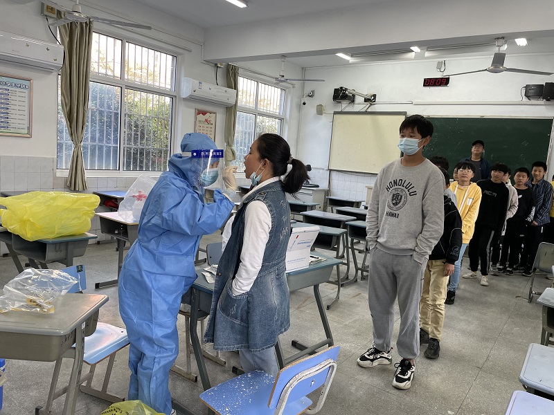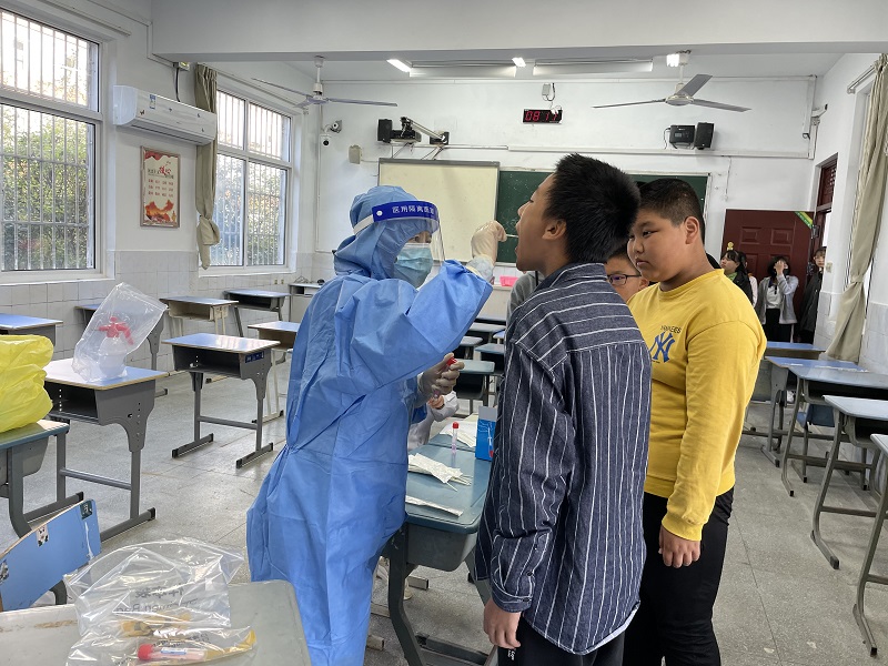為配合疫情防控工作,切實保障我校師生的健康安全,根據(jù)市教體局的統(tǒng)一安排,10月29日上午,市五中邀請石城醫(yī)院醫(yī)護人員進校為初中部學生開展新冠病毒核酸檢測工作。采樣過程中,參檢學生在老師的引導下有序排隊,依次進行檢測,F(xiàn)場秩序井然,有條不紊。檢測結束后,醫(yī)護人員對現(xiàn)場進行清理、消毒,并將醫(yī)療廢棄物集中轉運至規(guī)定地點處理。