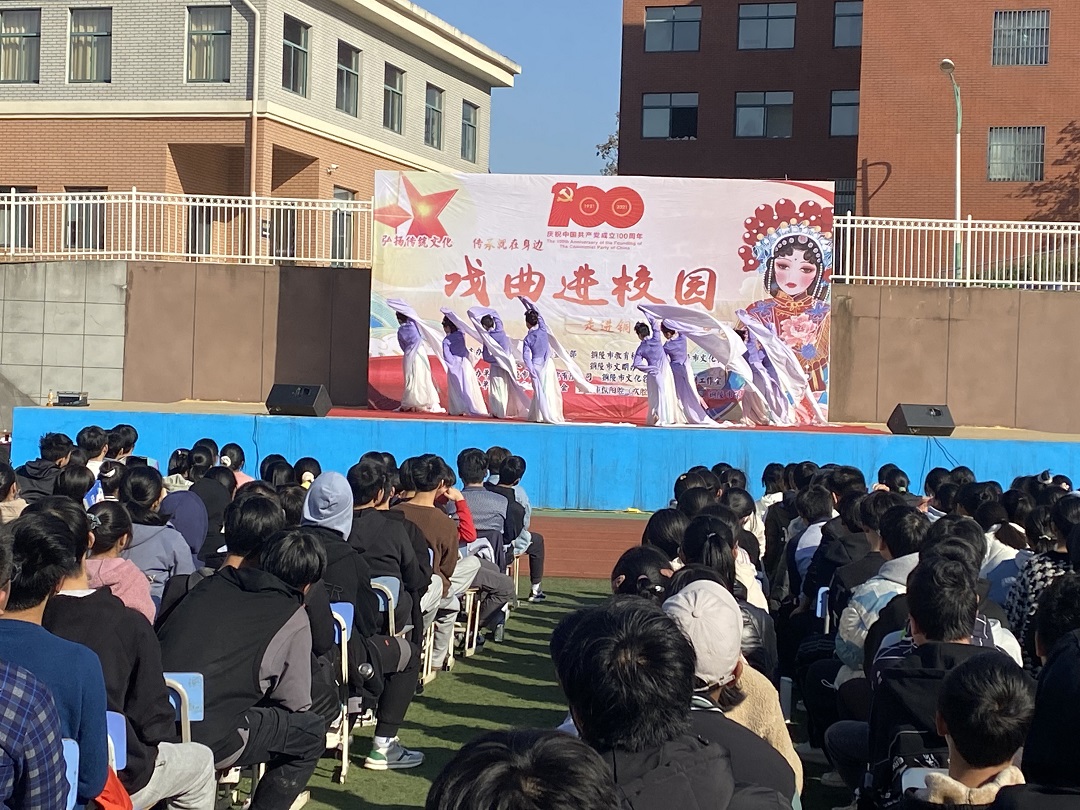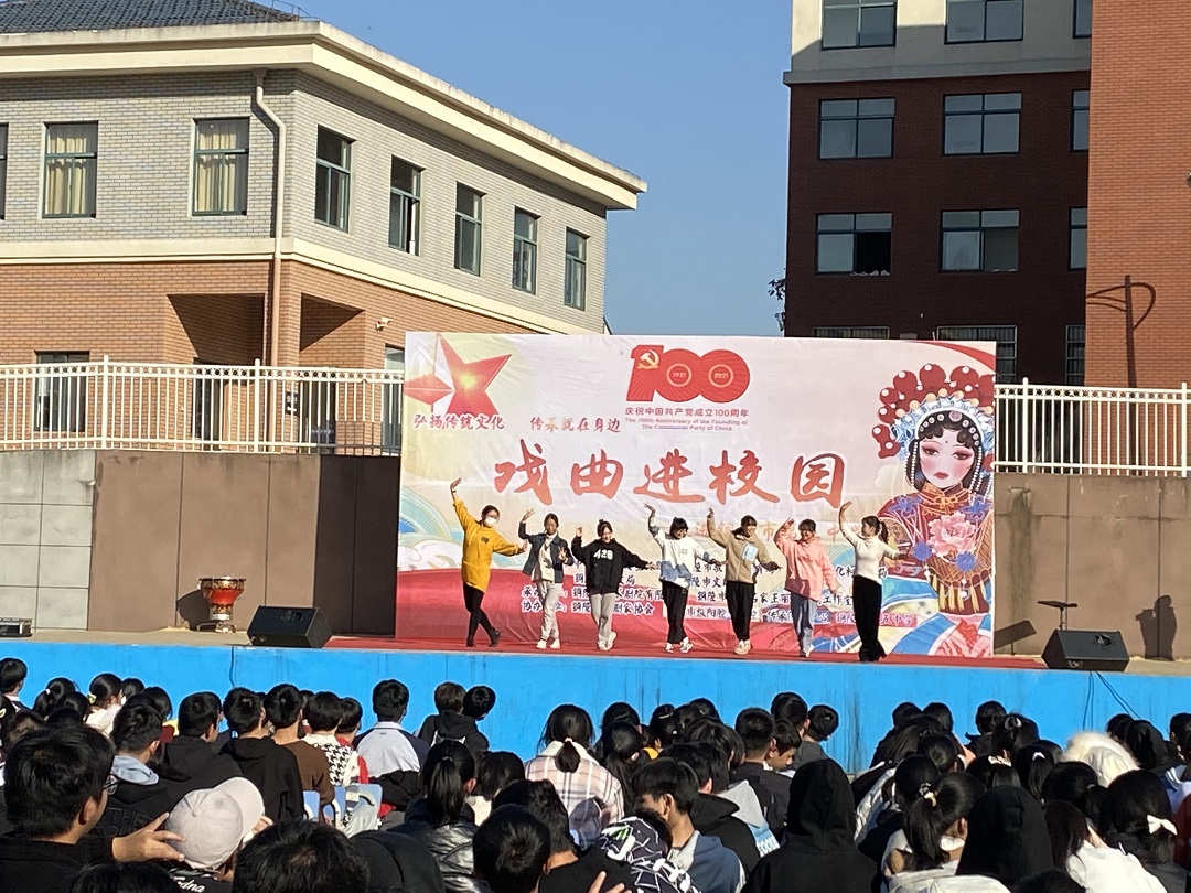 此次“戲曲進(jìn)校園”演出的節(jié)目,有經(jīng)典唱段的呈現(xiàn),也有地方戲樅陽(yáng)腔(吹腔)的展示,還有體現(xiàn)時(shí)代內(nèi)容的戲曲創(chuàng)新節(jié)目的登場(chǎng)。既傳承了經(jīng)典,也創(chuàng)新了國(guó)粹,歌頌了黨領(lǐng)導(dǎo)人民在脫貧攻堅(jiān)和抗擊疫情過程中的感人成就。演員們精彩的表演,讓同學(xué)們?cè)俅瘟私鈶蚯某⒛、做、打的基本?nèi)容,學(xué)生們不僅學(xué)到了戲曲知識(shí),還受到了愛黨愛國(guó)情懷的洗禮。